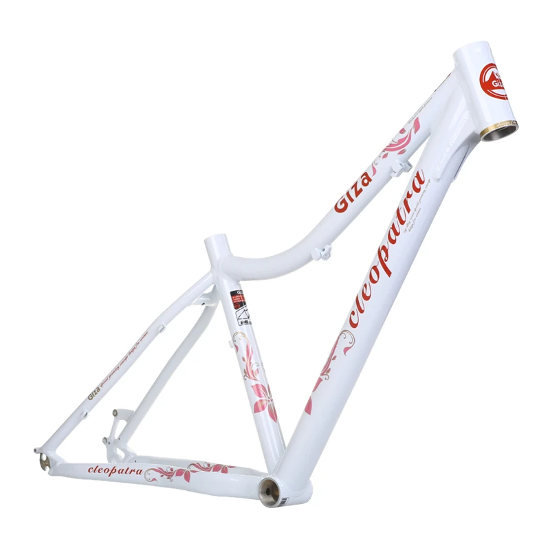 Giza Gizaboss Cleopatra Design for Woman MTB Bicycle 6061 Aluminum Alloy Frame 26 wheel 15 16.5 inch BB68mm Brand:Giza Model:Cleopatra Wheel:26 inch Material:6061Aluminum Alloy Size:15 & 16.5inch Head tube:44mm Straight Seatpost:31.6mm Bottom Bracket:BB68mm BSA Color:White/blue,White/Red