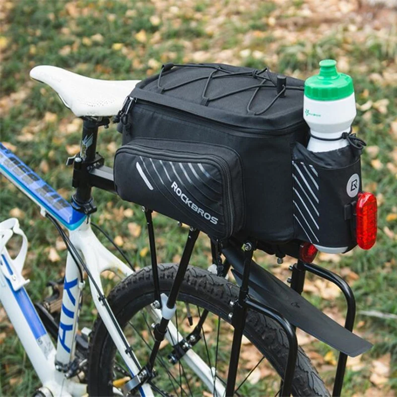 Brand Name:ROCKBROSModel Number:K0130A32Function:With LidQuick release system, easily be fixed with seatpostsReflective strap to keep cycling safePockets on each side can stretch and extend,larger capacityAdjustable,with rain covercolour:blackMaterial:PolyesterSize:35*17*14cmPackage Contents:1 * Bicycle rear shelf packageOnly the above package content, other products are not included.Note: Light shooting and different displays may cause the color of the item in the picture a little different from the real thing. The measurement allowed error is +/- 1-3cm.