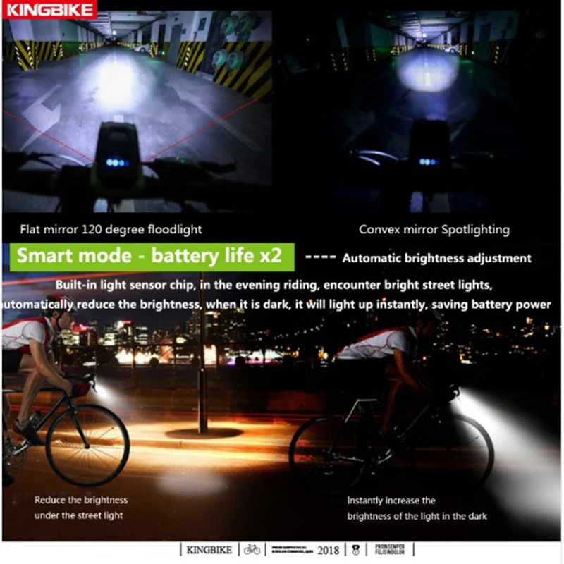Bike Light Touch USB Rechargeable Bicycle Light Handlebar Headlight Waterproof Smart Front Bike Light 800 Lumen Cycling led lamp Product Parameters Weight:125g Size:10.8*5.2*3cm Shell Material: IPX 6 Waterproof ABS Battery: Built-in 2000mAh(or 4000mAh) Li-polymer battery,two kinds for choice Charging:USB Brightness:800Lumens Lamp Beads:T6 x 2 Speaker Sound:120 db Place of origin:China Main Features --------------------------------------------------------------------------------------- Six Mode of light: 1.Flood Mode:LED 1 Hightlight/Working time:3 Hours 2.Flood Mode:LED 1 Smart Mode/Working time:6 Hours 3.Spotlight Mode:LED 2 Hightlight/Working time:3 Hours 4.Spotlight Mode:LED 2Smart Mode/Working time:6 Hours 5.Flood Mode:LED 1 Lowtlight/Working time:10 Hours 6.Warning Mode:LED 1 and LED 2 Highlight/Working time:4 Hours Quick realse andSlight touchsystem: Touch the switch 3 seconds to turn on/off,swiftly press the switch to change 6 modes When the bicycle stops moving after one minute,the bicycle will automatically stop lighting to save energy,lightly touch to open it again Package Includes --------------------------------------------------------------------------------------- 1 xSmart Bicycle Front Light with Speaker 1 xUSB Cable LARGE BATTERY CAPACITY No need to worry about battery life A B 2000mAh lithium battery 4000mAh lithium battery High light mode for3hours High light mode for6hours Smart mode for6hours Smart mode for6hours Low light mode for10Hours Low light mode for10Hours DOUBLE T6HIGHLIGHT BEADS 800 LUMENS HIGHLIGHT Two T6 high-lighting beads,divided into near-light dual mode AUTOMATIC BRIGHTNESS ADJUSTMENT Built-in light sensor chip,when riding a bicycle at night,it will brighten the street light,it will automatically reduce the brightness,when it reaches dark,it will increase the brightnss instantly, save power consumption,generally ride in the city,the life time will double. SIX-SPEED LIGHTING MODE INTRODUCTION POWER DISPLAYLIFE CONROL IN REAL TIME Four grid display indicator 25%-50%-75%-100% Do you have a ride that is half-powered?with it ,you can Cntrol your life time in real time Touch switch Professional Waterproof Press and and hold for 3 seconds to open, tap once,switch gears, long press for 3 seconds to close HIGH DECIBELSPEAKER SPLIT WIRE-CONTROLLED HORN SITCH 40CM LONG SPEAKER CABLE,EASY TO USE INTELLIGENT START AND STOP Parking for 3 minutes,automatic closing,bike vibration,automatic opening USB CHARGING,CONVENIENT AND FAST PROFESSIONAL WATERPROOF DESIGN 3 COLORS CAN BE SELECTED Important notes 1.import duties,taxes and charges are not included in the item price or shipping charges,these charges are the buyers responsibility 2.before sign for the parcel,please check and make sure good is in it,if not please refuse to sign for it,it ever happened that somebody stole the Goods from the parcel!you are regarded as received right product as long as you signed for the parcel Payment 1.we accept escrow payments,better for both you and me,it is easy and free to use.we will ship to worldwide 2.we ship with in 2-3 days after payment is received 3.we only ship to the given address,please make sure the name and address is correct before order 4.the order will be shipped by the way as you selected,if the shipping way you selected can not deliver the goods to your country or region, we will choose another way which can deliver instead 5.normally a delivery day is 7 working days,sometimes it would be longer because of the bad weather,the time waste of customs clearance, please waiting patiently when you do not receive the item on time,if you don't receive the item within twenty days,please contact us, and then i will help you track it RETURNS 1.items should be returned to us within 7 days from date of receipt 2.please contact us before returning defective item 3.return items should include the original packaging and accessories 4.shipping and handling charges are non-refundable at any case Feed back Achieving satisfaction customers is not only a mission but a passion for us!! we take pride in our products and we would like nothing more than for you to positive experience when shopping with us misunderstandings may occur,so in the unlikely event you experience any problems,prior to leaving neutral feedback,please contact us, we are always open to hear our customers,we will try our best to resolve any issues.